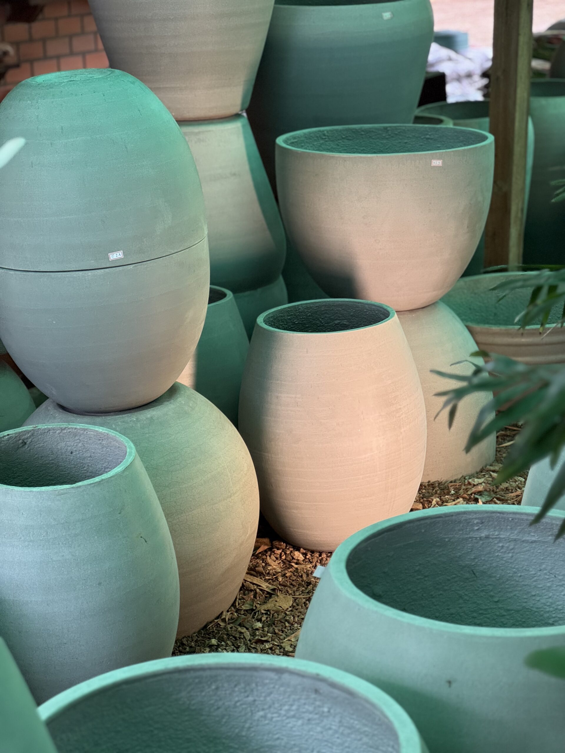 Vaso em fibra, vaso em polietileno, vaso em cimento, vaso em cerâmica, vaso plástico e vaso esmaltado.
